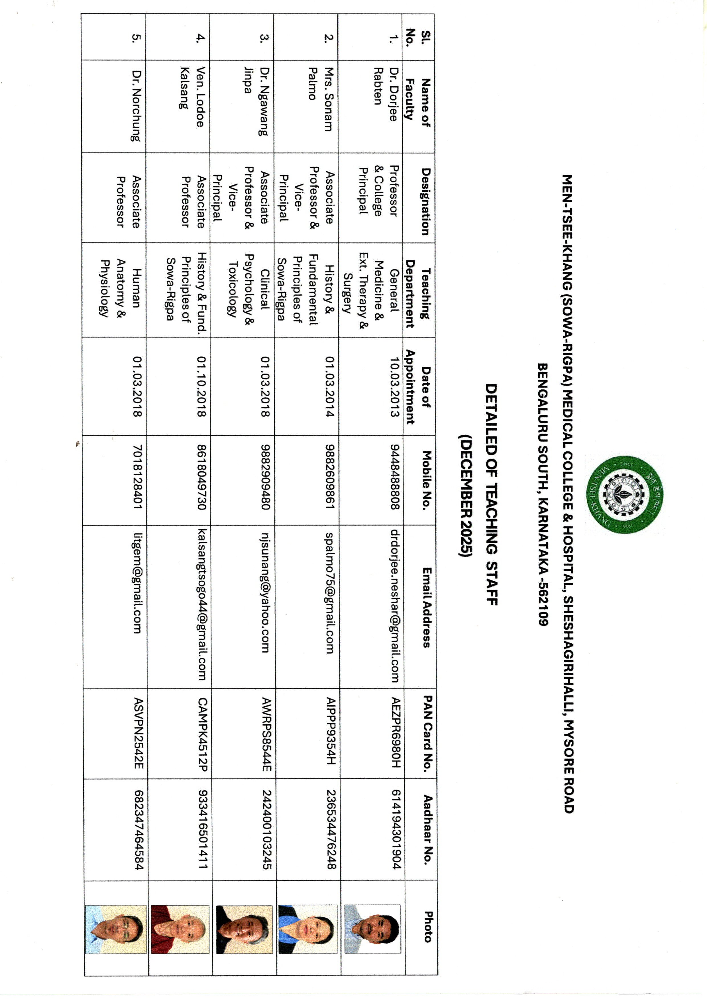 S.No Photo Name Qualification Designation Department